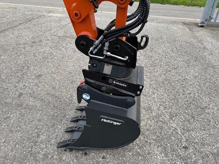 - Technische Daten* Neue Maschine* Komplett mit Oilquick – Drehschnellkupplung (Holp OQR 031)* Verrohrung* IFM-Display (Wegfahrsperre, Funktionsumschaltung) * 1.300 mm Steuerhebel* 300 mm Gummiketten* Betriebsgewicht 2.720 kg* Motorleistung 15,6 kW* Yanmar-Motor 3TNV70 gemäß europäischer Norm Stufe V* AM/FM-Radio* 2 x Tieflöffel (300 mm und 500 mm)